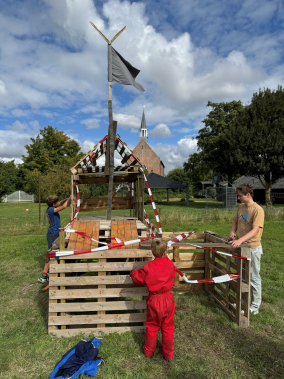 Afgelopen zaterdag 23 augustus hebben we weer een huttenbouwdag gehad, met fantastisch weer. Met veel kinderen, ook uit Oosternieland en Garsthuizen. Er waren drie teams, die gingen voor de prijzen van de grootste, mooiste en leukste hut. We aten een ijsje in de pauze. Na afloop reikte Louis voor ieder team een prijs uit. Daarna was er voor ieder friet met kroket in het dorpshuis.